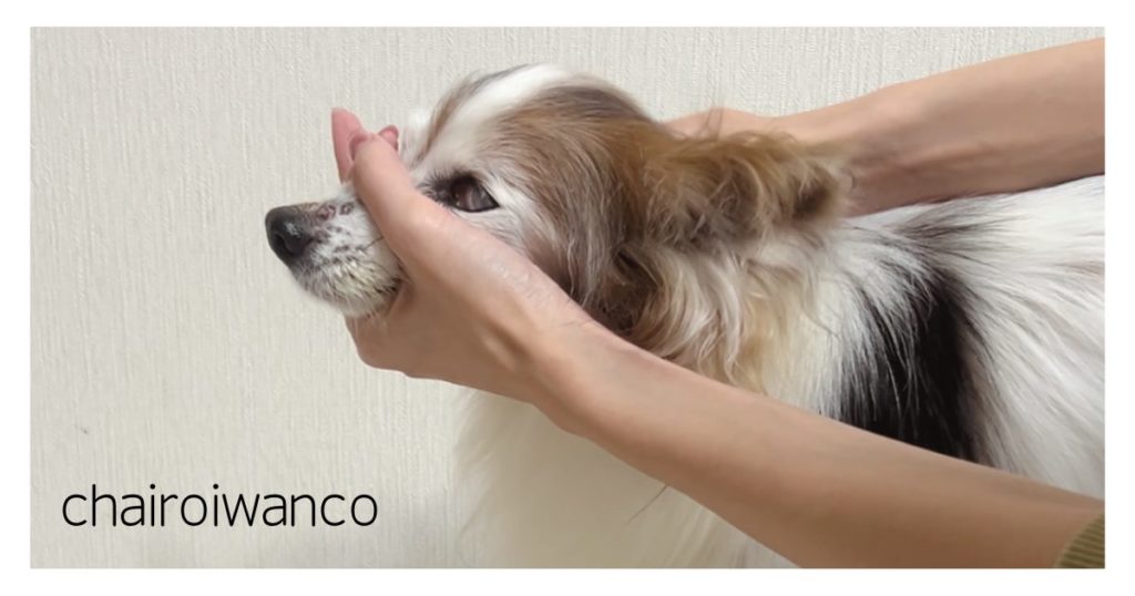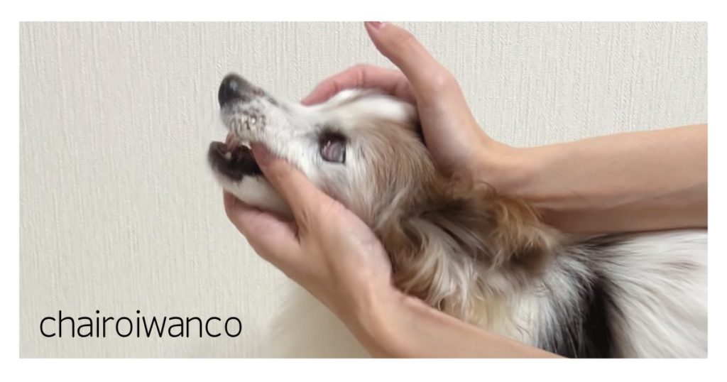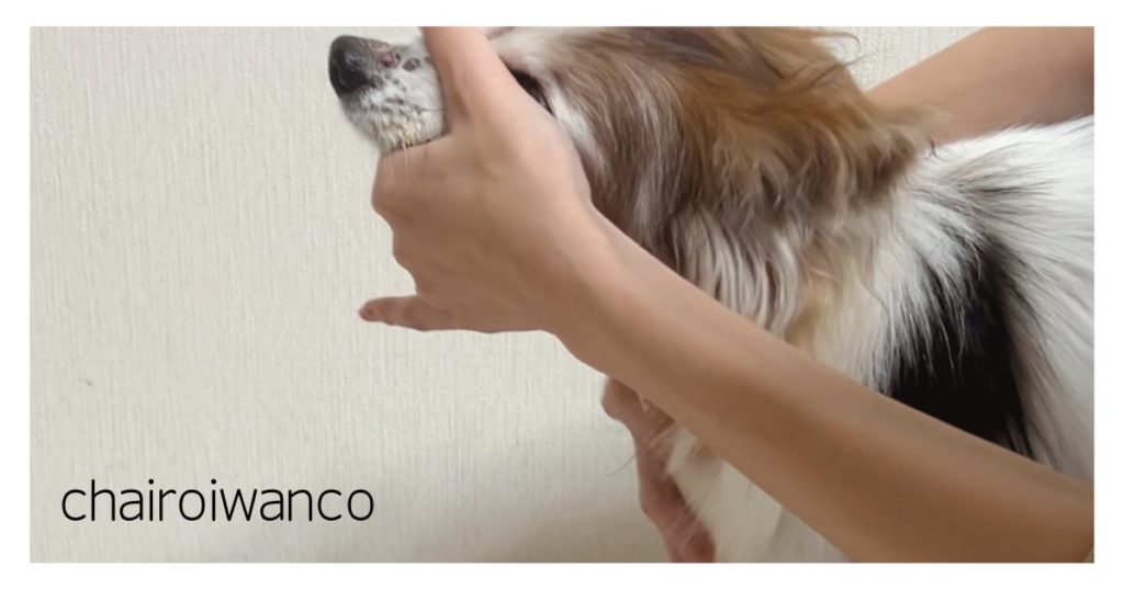①背中側から犬の口を開ける