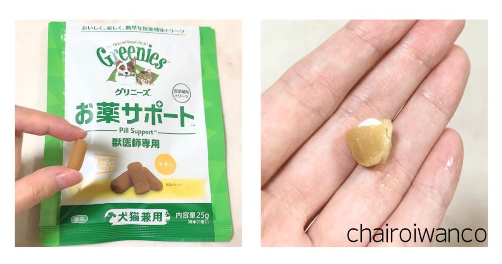 我が家で使っていたのは犬猫に使える、「グリニーズのお薬サポート」というもの。