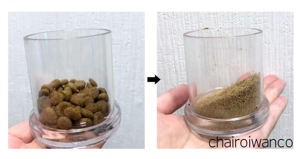 うちの子がやっていたのは、こちらのコーヒーミルで固形フードを砕くというもの。